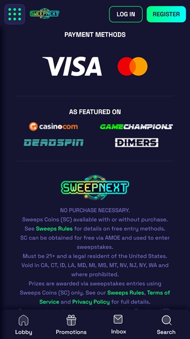 Ler os termos e condições de cada cassino de sorteios que você visita é uma parte importante de ser um jogador responsável. Por isso, decidimos compilar uma pequena lista dos termos de serviço importantes do SweepNext: