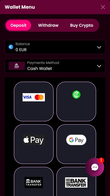 O cassino aceita tanto moedas fiduciárias quanto criptomoedas.