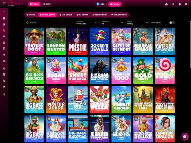 Por exemplo, ao criar uma conta no Tenex Casino, você poderá desfrutar de uma quantidade impressionante de jogos, que abrangem dezenas de categorias e gêneros para explorar. No total, a marca possui licenças de mais de 110 fornecedores de software exclusivos, um número expressivo que agradará até mesmo os jogadores mais experientes.