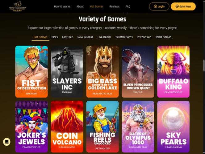 Em relação ao The Money Factory, os jogadores podem navegar por uma dúzia de fornecedores de software exclusivos. Embora esta não seja a lista mais extensa que já vimos, o catálogo está repleto de fornecedores conhecidos por produzirem apenas jogos de cassino da mais alta qualidade, então não faltará diversão por aqui.