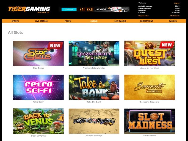 A seleção de slots é decente, já que o TigerGaming Casino oferece jogos da Rival em seu catálogo. Muitos jogos acabam se sobrepondo em termos de recursos, mas há algumas excelentes opções para os jogadores testarem a sorte. Uma série de jackpots progressivos está disponível, oferecendo aos jogadores a chance de ganhar prêmios grandes.