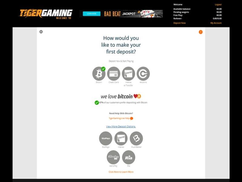 TigerGaming Casino não recebeu o endosso do Wizard of Odds.