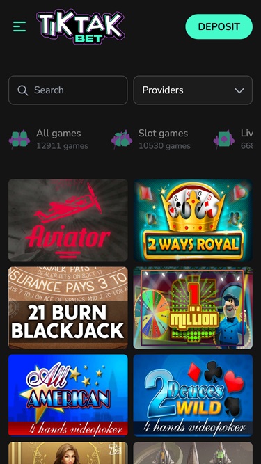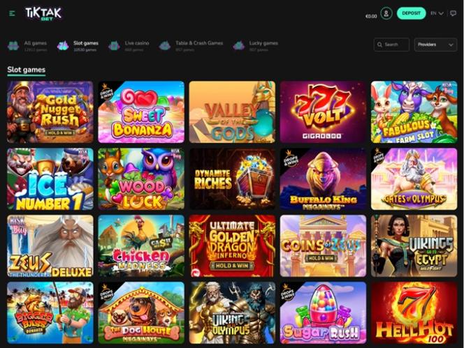 Agora, vamos mergulhar na seção de slots online e dar uma olhada em alguns dos favoritos dos jogadores. O TikTak Bet oferece uma biblioteca impressionante de jogos de slots — esta categoria conta com mais de três mil opções para escolher. Seja você um iniciante no mundo dos jogos de azar online ou um jogador experiente, você não terá dificuldade em encontrar o jogo perfeito para o seu gosto. Há realmente algo para todos!