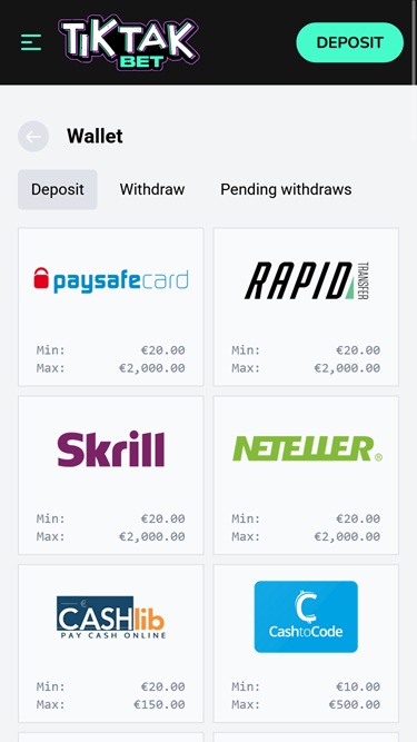 A TikTak Bet pode recusar depósitos a seu exclusivo critério.