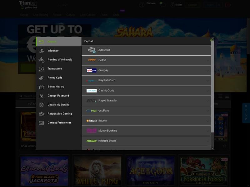 O sistema bancário da TitanBet é excelente, com o cassino pagando os ganhos muito rapidamente após um período de espera de 48 horas. O site aceita PayPal, ecoPayz, Neteller e Skrill para depósitos e saques, enquanto os depósitos também podem ser feitos via SOFORT, WebMoney, PugglePay, Diners, Maestro, MasterCard, EntroPay, Visa, GiroPay, Moneta.ru, Neosurf, iDebit, ClickandBuy, Euteller, Paysafecard, Poli e transferência bancária.