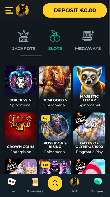 O site está disponível em inglês e alemão e oferece opções bastante intuitivas, incluindo a busca. Para encontrar um título específico, basta digitá-lo no campo de busca ou navegar pelos jogos disponíveis pelo nome do provedor. Você também pode selecionar a marca do desenvolvedor de software no menu suspenso.