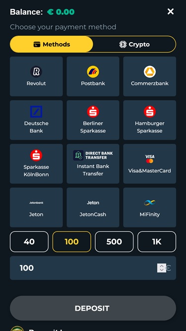 Aqui, os jogadores poderão escolher entre uma excelente seleção de opções bancárias. Embora alguns dos métodos disponíveis possam não estar acessíveis na sua região, visto que todas as opções de pagamento dependem do país, acreditamos que existem opções suficientes para atender às necessidades de todos.