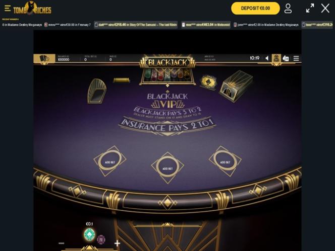 TombRiches é um destino de jogos de azar com crupiês ao vivo, onde os jogadores podem encontrar joias de cassino ao vivo, como Blackjack Side Bets, Royale Blackjack 2, Blackjack, Vinnie Jones Blackjack, Ultimate Blackjack with Olivia, Classic Blackjack with Sweetheart 16 x200, Video Blackjack, Mega Fire Blaze Blackjack, Freeway Poker, Win Poker, Tower Poker, Deuces Wild Video Poker, Caribbean Stud Poker e outros títulos emocionantes adequados para jogadores de todos os tipos e níveis de habilidade.