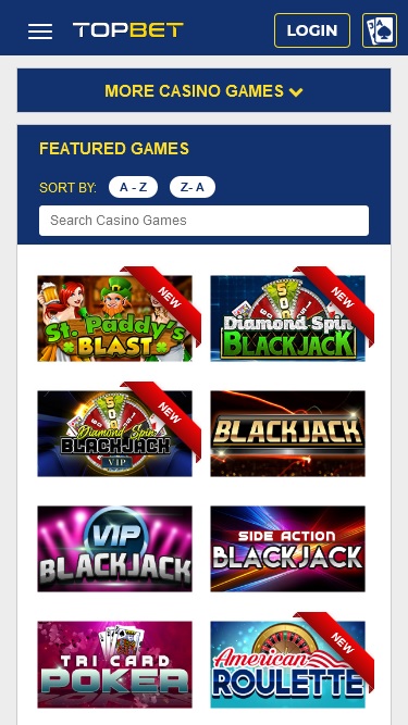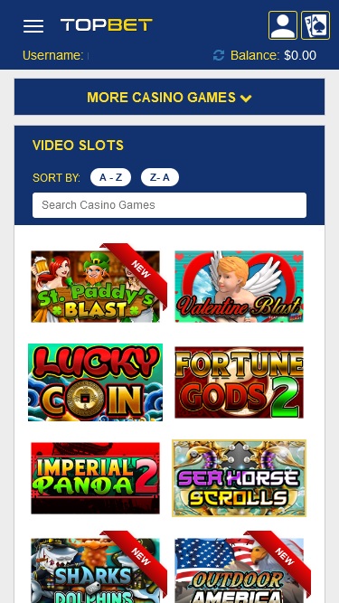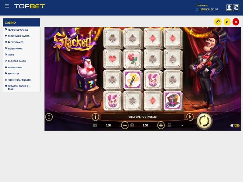 A TopBet é alimentada por BetSoft, Wager2Go and KA Gaming e os jogos do cassino são oferecidos por meio de uma plataforma de jogo instantâneo baseada na web, que carrega diretamente pelo seu navegador de internet. O site também é totalmente compatível com dispositivos móveis, permitindo que você aposte usando seu smartphone ou tablet.