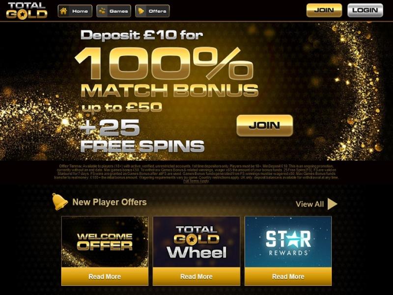 O Total Gold Casino é um site de apostas online que abriu as portas em 2014 e funciona como um cassino subsidiário da 888, proprietária deste e de dezenas de outros sites de apostas. O Total Gold conta com o apoio de uma sólida equipe de gestão, e os jogadores podem esperar encontrar uma ampla biblioteca de jogos, bem como pagamentos rápidos de ganhos.