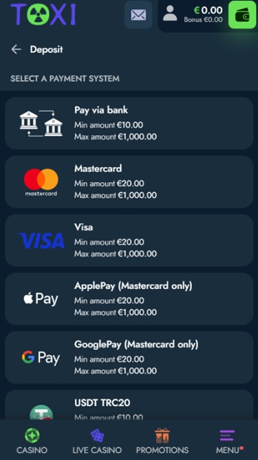 Por exemplo, o cassino Toxi oferece serviços principalmente para clientes do Canadá , Alemanha, Áustria, Finlândia , Dinamarca, Noruega e Suécia, o que significa que nem todos os bônus estarão disponíveis para todos os países. Portanto, leve isso em consideração.