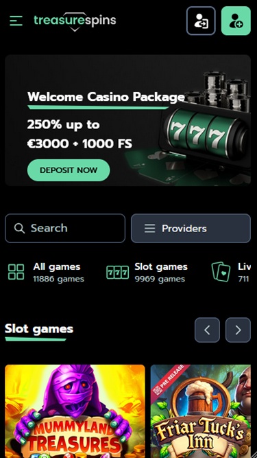 À primeira vista, além de uma vasta biblioteca de jogos, o Treasure Spins oferece um ambiente agradável e uma excelente experiência de jogo online . Sem falar das ofertas promocionais excepcionais!