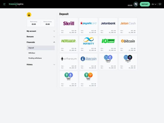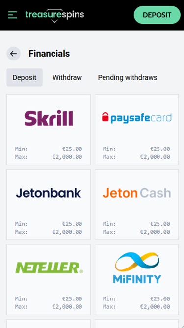 Na época em que analisamos o Treasure Spins Casino, não havia nenhum programa de fidelidade oferecido.