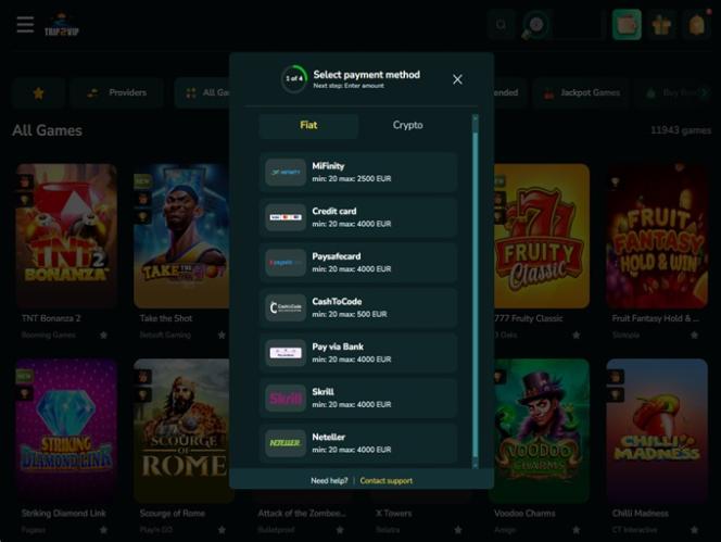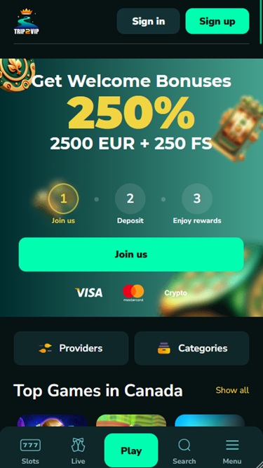Além de oferecer dois tipos de programas de fidelidade, o Trip2Vip Casino também apresenta um plano promocional pequeno, porém robusto. A promoção mais notável é o generoso pacote de boas-vindas, criado para tornar a experiência inicial dos novos jogadores ainda melhor.