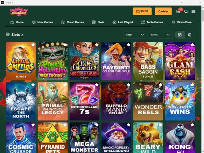 Quanto às categorias de jogos encontradas no cassino TripleSeven, todas as principais estão presentes. Há uma grande variedade de jogos de caça-níqueis, seguida por uma sólida coleção de jogos de mesa (principalmente variantes de Roleta e Blackjack) e vídeo pôquer (Bonus Deuces Wild, Jacks or Better , Joker Poker, Aces and Eights, para citar alguns). Sabendo que este fornecedor não se dedica à criação de jogos com crupiês ao vivo, esse gênero é o único ausente da oferta.