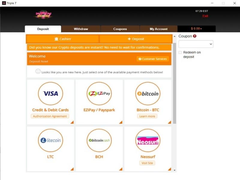 Aqui estão mais informações sobre os métodos de pagamento do cassino TripleSeven: