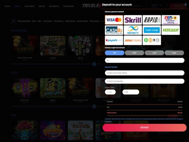 O Trivelabet Casino é um site de cassino online e apostas esportivas pertencente a uma empresa regulamentada e licenciada pela Kahnawake Gaming Commission. O cassino é voltado principalmente para jogadores da Suécia, Noruega, Itália, Polônia, Finlândia, Dinamarca, Bélgica, Suíça, Estônia, Canadá e Áustria, e a plataforma de jogos está disponível em vários idiomas, incluindo tcheco, alemão, grego, inglês, espanhol e outros.
