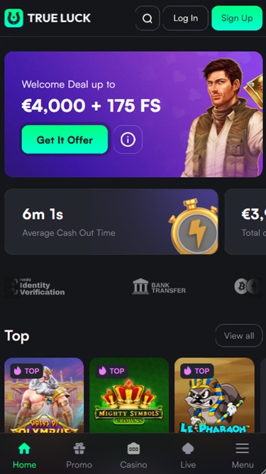 Lançado em 2025, o Trueluck Casino é um site de jogos de azar abrangente que se concentra principalmente em atrair jogadores da Holanda, oferecendo-lhes uma seleção completa de jogos de cassino, como caça-níqueis online, jogos de mesa, jogos com crupiês ao vivo, jogos de vitória instantânea e loterias. Com um forte plano promocional e disponibilidade de criptomoedas, muitos jogadores holandeses certamente apreciarão o que a marca oferece.