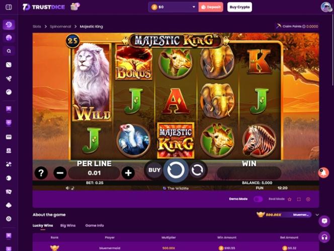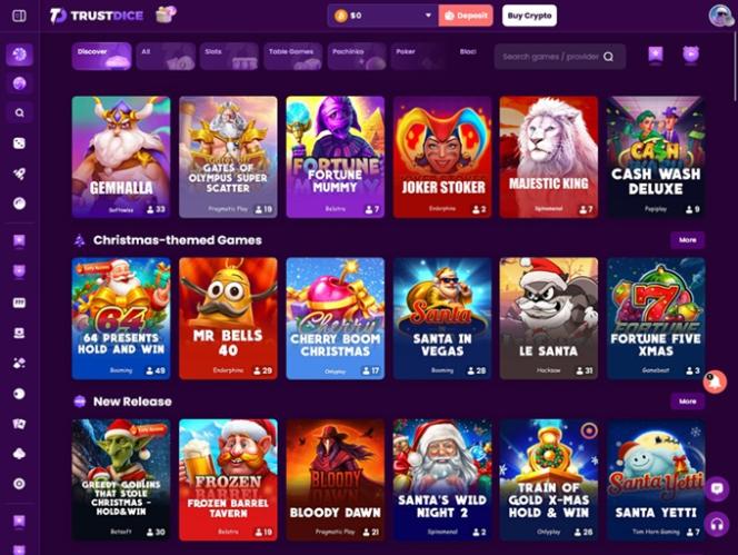 O TrustDice possui uma biblioteca de slots bastante decente, com o site oferecendo mais de 900 jogos diferentes. Há jogos de fornecedores como Wazdan, Betsoft, Endorphina e outros. Existem diversos jackpots progressivos disponíveis, e a grande maioria dos slots pode ser jogada em dispositivos móveis, se preferir.