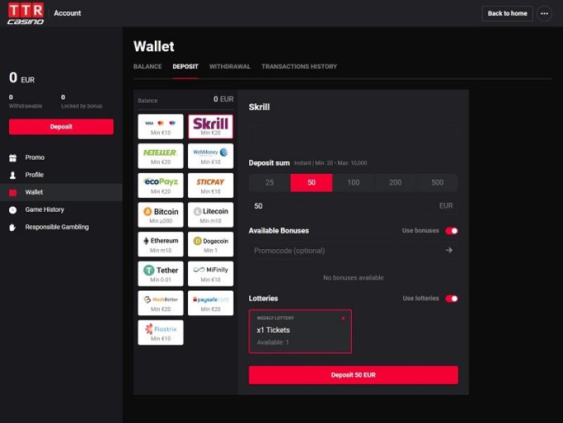 Atualmente, não parece haver nenhum sistema de pontos de fidelidade em vigor no TTR Casino.