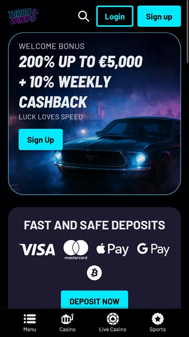 Existem duas seções principais: Cassino e Cassino ao Vivo, além de Esportes para quem gosta de explorar opções de apostas . Não importa se você acessa o Turbo Wins pelo computador ou por um dispositivo móvel , você obterá excelentes resultados, pois este cassino é perfeitamente otimizado para telas de todos os tamanhos.