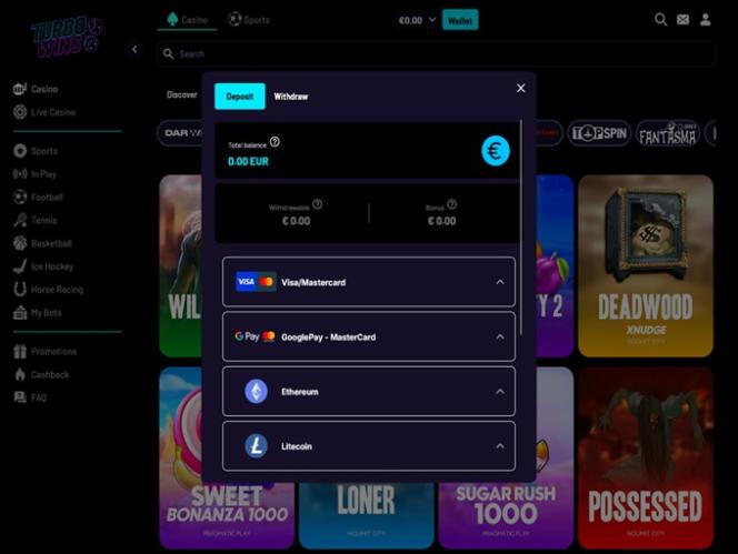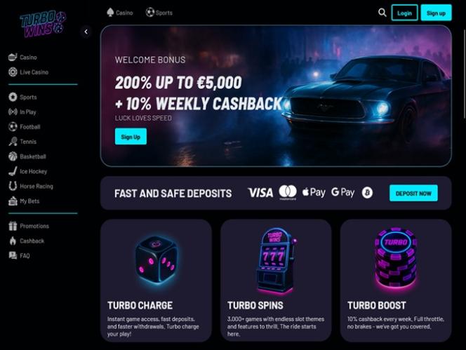 Turbo Wins é um site de cassino online e apostas esportivas licenciado e regulamentado pelo Governo da Ilha Autônoma de Anjouan, União das Comores. Esta marca de jogos de azar online é voltada para jogadores residentes na Holanda, Canadá, Suécia, Noruega, Alemanha, Áustria, Suíça e França.