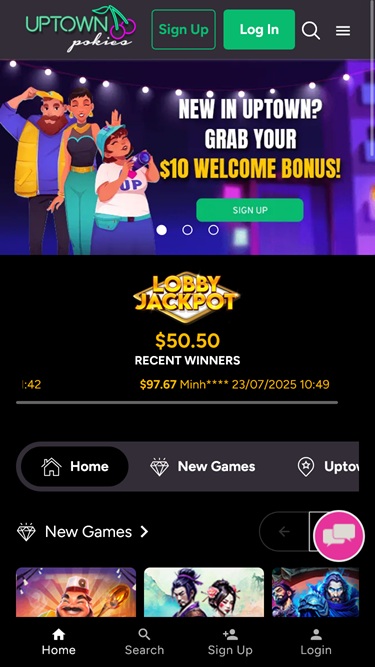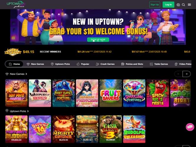 O Uptown Pokies é operado pela Real Time Gaming and Spinlogic Gaming e os jogos do cassino são oferecidos por meio de uma plataforma de jogo instantâneo baseada na web. O site possui miniaturas grandes para os jogos e é muito fácil de navegar. O jogo em dispositivos móveis também é compatível, permitindo jogar em smartphones e tablets.