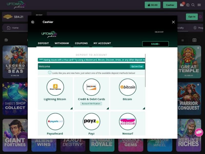 O sistema bancário do Uptown Pokies é excelente, permitindo que os jogadores depositem e saquem via Visa, MasterCard, American Express, Skrill, Neteller, Paysafecard, ecoPayz, Bitcoin e muito mais. O cassino tem um tempo de processamento de 48 a 72 horas, mas os pagamentos são feitos logo em seguida. Há um limite de saque semanal baixo, mas isso se deve mais às restrições do mercado australiano.