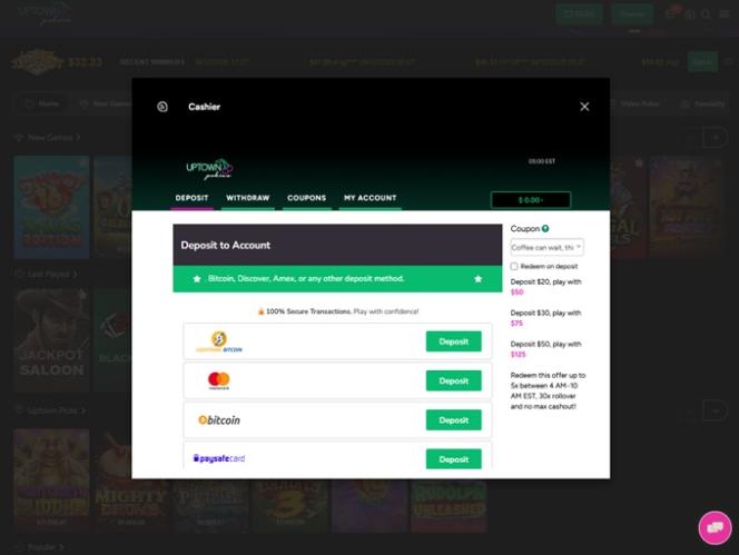 Opções bancárias no Uptown Pokies