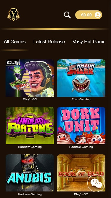O cassino Vasy é um cassino online pertencente e operado pela Mountberg BV, uma empresa constituída sob as leis de Curaçao, licenciada e regulamentada pela Antillephone NV.