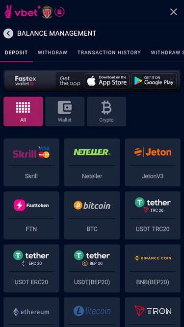 Opções bancárias no Vbet Casino
