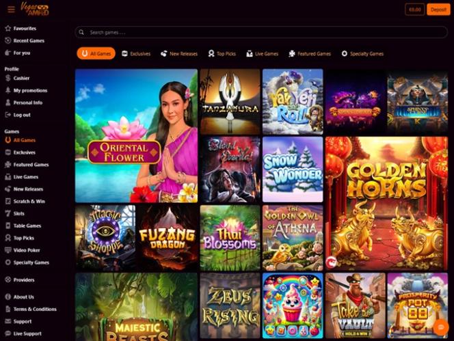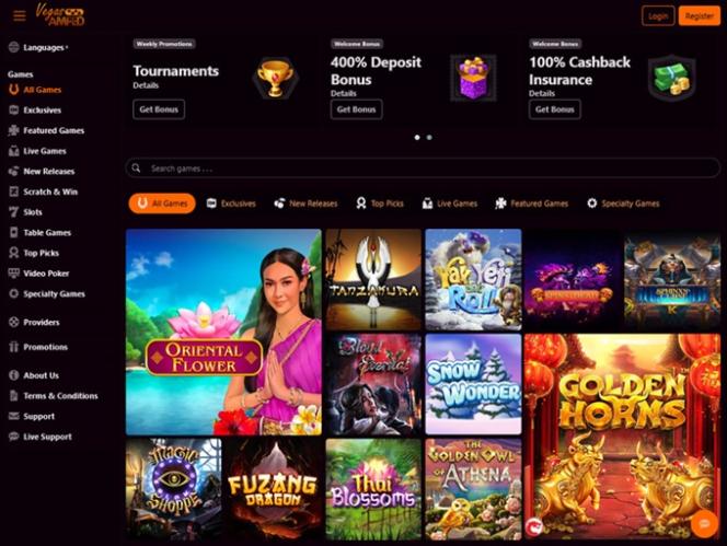 O Vegas Amped Casino é alimentado por BetSoft, Genesis Gaming, Rival, Saucify, Vivo Gaming, Spinomenal, Felix Gaming, Fugaso, Radi8 Games, Fresh Deck Studios, Woohoo Games, Qora Games, SmartSoft Gaming, Tom Horn Gaming, Genii, Wager Gaming, Dragon Gaming and Dragoon Soft e os jogos do cassino são oferecidos por meio de um software para download, bem como por uma plataforma de jogo instantâneo baseada na web. O cassino também oferece suporte para jogos em dispositivos móveis, o que permite jogar em qualquer lugar com acesso à internet.Outros jogos