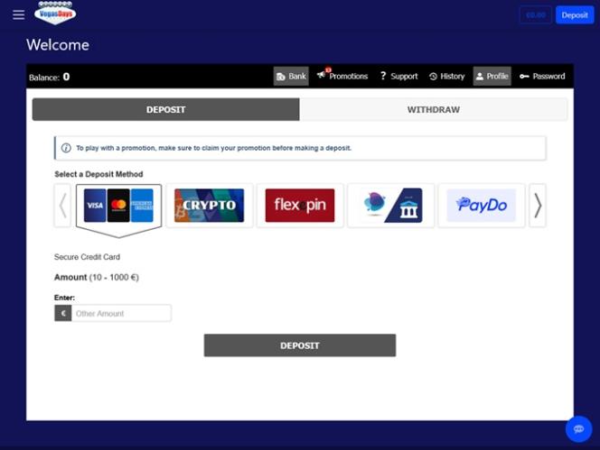 Não gostoO Vegas Days tem péssima reputação e roubou meu dinheiro duas vezes. Nunca mais vou jogar aqui...