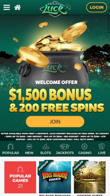 O Vegas Luck Casino é um site de apostas online operado pela BGO Entertainment. O site oferece serviços a apostadores em regiões regulamentadas, incluindo o Reino Unido e a Europa. Os jogadores do Vegas Luck encontrarão uma vasta biblioteca de jogos, transações bancárias rápidas e condições razoáveis. Tudo isso faz do Vegas Luck um ótimo lugar para apostar.