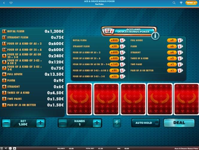 Existem vários jogos de Video Poker disponíveis para os jogadores. Entre eles estão Aces and Eights (1 mão e multimãos), All Aces, Bonus Deuces Poker, Bonus Poker, Bonus Poker Deluxe, Deuces Wild (1 mão e 4-100 mãos), Double Bonus Poker, Double Double Bonus Poker, Double Joker, Jackpot Deuces, Jacks or Better, Joker Poker, SupaJax e Tens or Better.