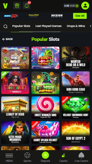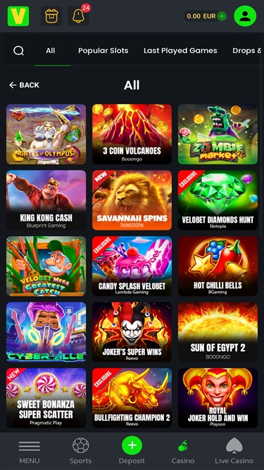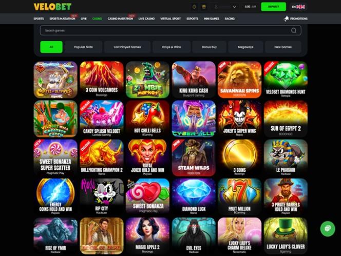 Todo o conteúdo da Velobet está bem estruturado e organizado nas seguintes categorias: Esportes, Maratona, Ao Vivo, Cassino, Cassino ao Vivo, Esportes Virtuais, Esports, Minijogos e Corrida. A partir daí, os jogadores podem escolher seu tipo de jogo favorito e relaxar para aproveitar a diversão e o entretenimento que este cassino online oferece.