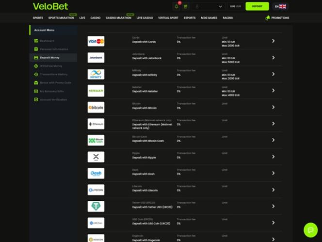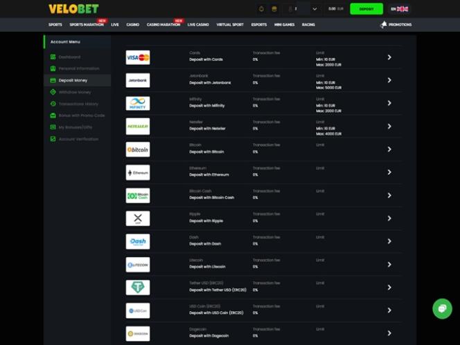 Os jogadores podem contar com diversas opções amplamente utilizadas para realizar depósitos e saques . O caixa oferece carteiras eletrônicas populares, cartões de pagamento, além de métodos de pagamento com criptomoedas e moedas digitais populares, incluindo Bitcoin, Bitcoin Cash, Litecoin, Ethereum, etc.