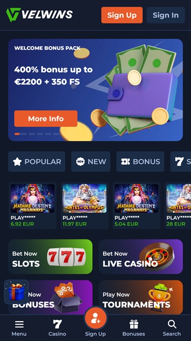 Velwins é um enorme cassino online voltado principalmente para jogadores daHolanda , oferecendo uma grande variedade de jogos de cassino e opções de apostas esportivas. A marca conta com mais de 9.000 jogos, incluindo caça-níqueis online, jogos com crupiês ao vivo, jogos de mesa e jogos instantâneos, além de oferecer um conjunto robusto de promoções e bônus.