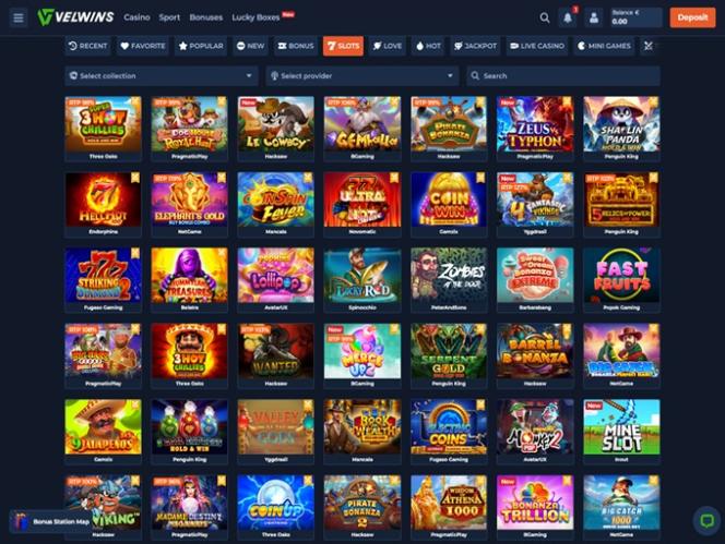No caso da Velwins, não faltarão ótimos jogos para jogar. O cassino tem dado muita ênfase à sua oferta, com o site afirmando que existem mais de 9.000 lançamentos exclusivos desenvolvidos por quase 80 desenvolvedores de software , a maioria dos quais conhecidos por produzir apenas jogos da mais alta qualidade.