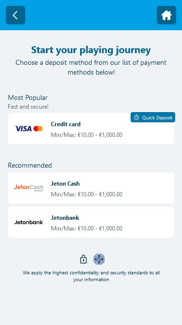 Vera & John têm um amplo Programa de Fidelidade, onde você pode trocar seus Créditos acumulados por Jogos Grátis (com Apostas) e Dinheiro (sem Apostas). A verificação da conta e o depósito são muito rápidos neste cassino. Você pode sacar quaisquer fundos a qualquer momento, sem qualquer restrição. Aqui, qualquer saque não tem limite máximo, como em outros cassinos, onde você pode sacar geralmente 10 vezes o valor do depósito (por exemplo, 50€ de depósito, 500€ de saque de bônus)!