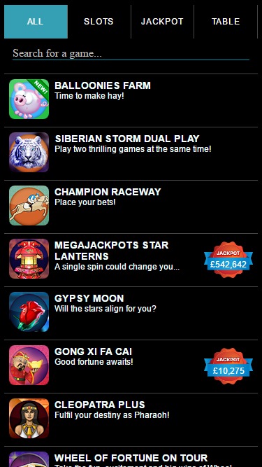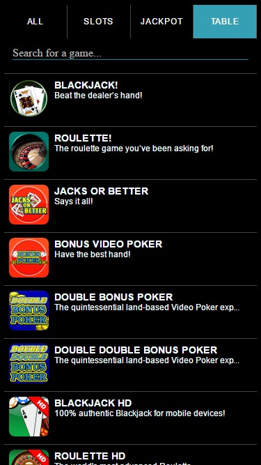 Há uma série de slots disponíveis para jogar no Very Vegas Mobile Casino, e os jogadores encontrarão uma variedade de caça-níqueis de vídeo, bem como uma seleção de jogos clássicos. Os jogos são frequentemente derivados de caça-níqueis populares encontrados em cassinos físicos e oferecem ótimos temas e recursos em seu dispositivo móvel. Claro, a única desvantagem é que a seleção de jogos neste cassino móvel não é tão grande quanto a de alguns outros cassinos otimizados para dispositivos móveis do setor. O MegaJackpots Progressivo da IGT também está disponível para ser ganho.