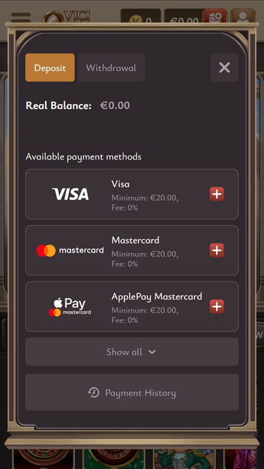 O cassino nem sempre pode garantir a disponibilidade do método de pagamento preferido do jogador.