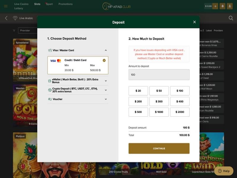 Abaixo está uma lista das promoções disponíveis no VIP Arab Club Casino.