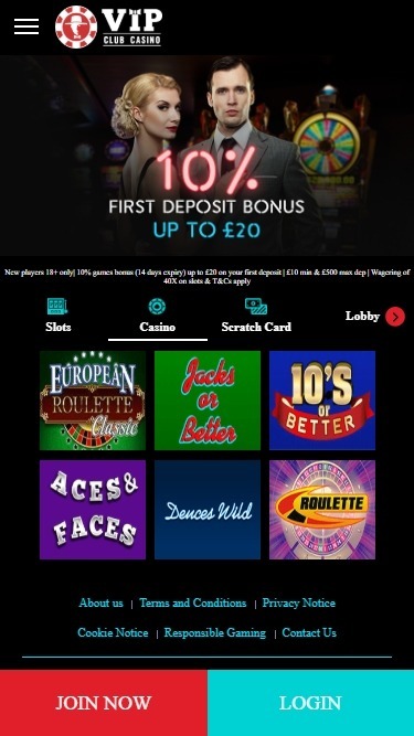 O jogo responsável tem uma página inteira dedicada no site do VIP Club, com informações sobre como combater o vício em jogos de azar e o jogo por menores de idade. A página apresenta diversas perguntas para reflexão sobre possíveis comportamentos problemáticos relacionados ao jogo, além de links para grupos de aconselhamento externos que podem oferecer assistência, caso necessário. O cassino também permite que os jogadores definam limites de apostas e se autoexcluam do site, se necessário. O atendimento ao cliente está disponível 24 horas por dia, 7 dias por semana, por e-mail ou chat ao vivo. Constatamos que a equipe respondeu em até 15 segundos após o envio de uma solicitação de chat, e o atendente com quem conversei foi cordial e capaz de responder a todas as minhas perguntas relacionadas aos termos de bônus e requisitos de apostas, o que é tudo o que eu poderia esperar da equipe. O cassino criptografa as informações do jogador usando tecnologia de criptografia SSL de 128 bits, o que é ótimo, pois protege as informações do jogador durante a transmissão entre o computador e os servidores do cassino. Isso é um requisito em nossa opinião, já que qualquer cassino que não criptografe as informações do jogador é arriscado e perigoso.Termos e Condições, Serviços Bancários