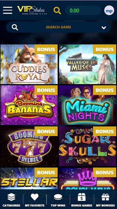 O VIP Stakes Casino oferece uma grande variedade de slots, tanto de vídeo quanto clássicos. No entanto, o cassino não inclui alguns jogos da Playtech Marvel, além de muitos outros títulos com grandes jackpots progressivos.