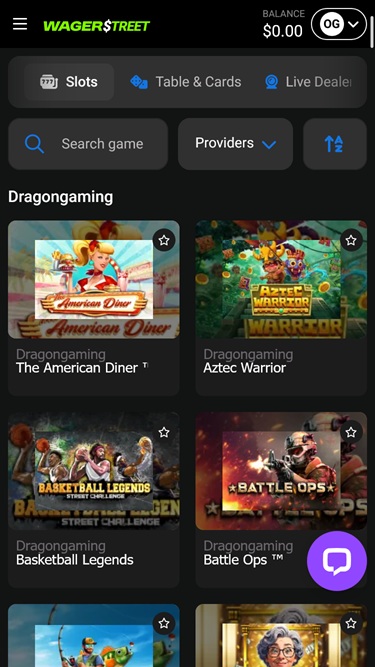 No que diz respeito à Wager Street, a marca não possui a linha mais extensa de opções de jogos. Ainda assim, ficamos surpresos com a quantidade de tipos e categorias de jogos, considerando a escassez de desenvolvedores de software. Isso sugere que você não terá problemas para encontrar exatamente o que procura.