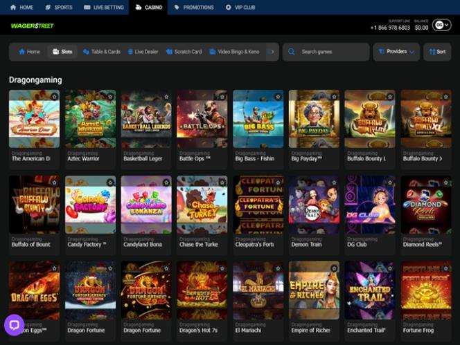 O cassino online Wager Street oferece uma seleção diversificada de jogos para todos os tipos de jogadores, desde caça-níqueis com dinheiro real e mesas com crupiês ao vivo até jogos de mesa clássicos, jogos instantâneos e raspadinhas. Além da extensa seleção de jogos, o site mantém as promoções sempre atualizadas, oferecendo uma variedade de bônus e vantagens especiais criadas para tornar a experiência de jogo ainda mais emocionante.