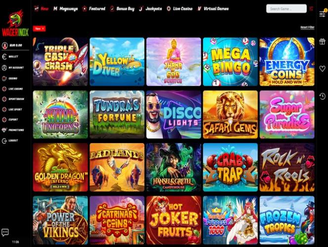 A Wagerinox oferece aos jogadores uma vasta biblioteca de slots, que é atualizada regularmente com novos lançamentos. Os jogadores podem explorar uma variedade de títulos de slots interessantes. Independentemente do seu nível de habilidade ou preferências de jogo, você encontrará conteúdo de alta qualidade para experimentar aqui.