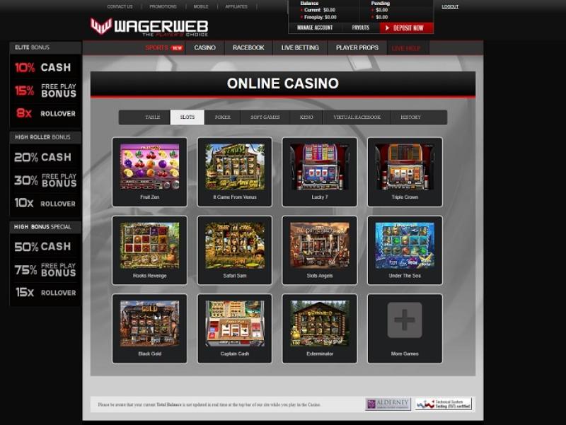 O WagerWeb oferece uma boa variedade de slots clássicos e de vídeo, embora o cassino pareça ter os mesmos jogos para jogadores dos EUA que podem ser encontrados em sites melhores. Há alguns jackpots progressivos disponíveis, e os jogadores também encontrarão slots para dispositivos móveis.