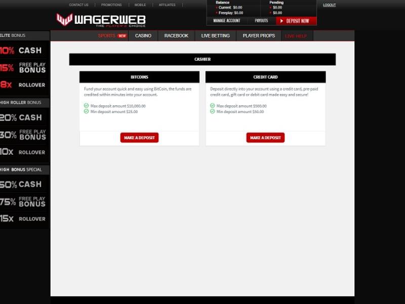 No WagerWeb, os jogadores ganham pontos de fidelidade com base no valor apostado. 500 pontos de fidelidade podem ser trocados por US$ 1 em dinheiro no cassino.